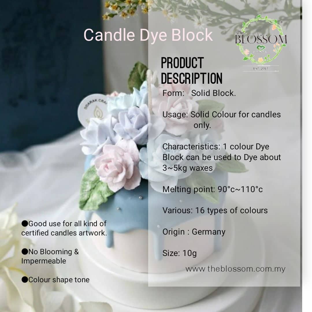Candle Dye Block is a High Concentration pigment which is ideal in candle making. We specially source these candle pigments so that you can achieve pastel and vibrant candle colors. These candle dyes are designed to make stable, long-lasting and safe burning candles.
